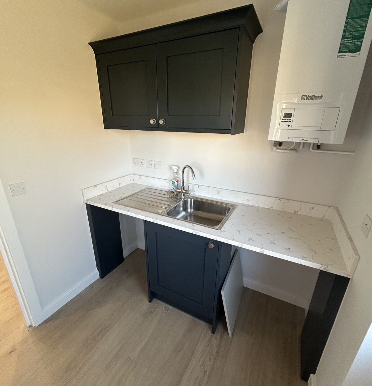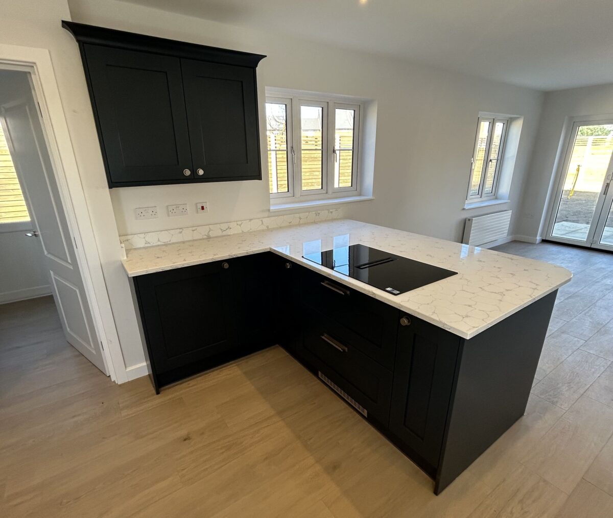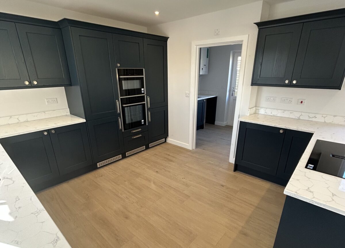 This kitchen strikes just the right balance between traditional charm and modern convenience, perfectly suited to busy family life. The Mornington Shaker cabinets in Hartforth Blue add a real sense of depth and personality, while the Strata Quartz White Venato worktops keep things fresh and refined with their clean, elegant look. The mix of classic craftsmanship and bold colour gives the space a style that feels both timeless and up to date.